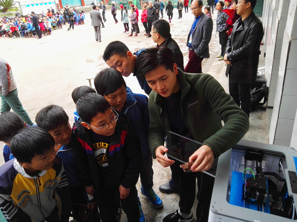 观摩现场交流形式多样,气氛热烈。在活动中,学校民革支部除了捐赠给同学们的五十套《打印你的理想世界——犀牛3D打印建模入门》教材,支部党员教师还向中小学生展示了多项科研成果,其中,无人机的演示,3D打印的零距离体验,前沿科技专题互动讲座等让孩子们非常兴奋。现场展示的科技创新成果中包括了陈竹老师开发的“道田创客科普K12教育计划”,该计划曾在2016年获得了教育部、四川省教育厅主办四川省大学生“互联网+”创新创业大赛银奖。